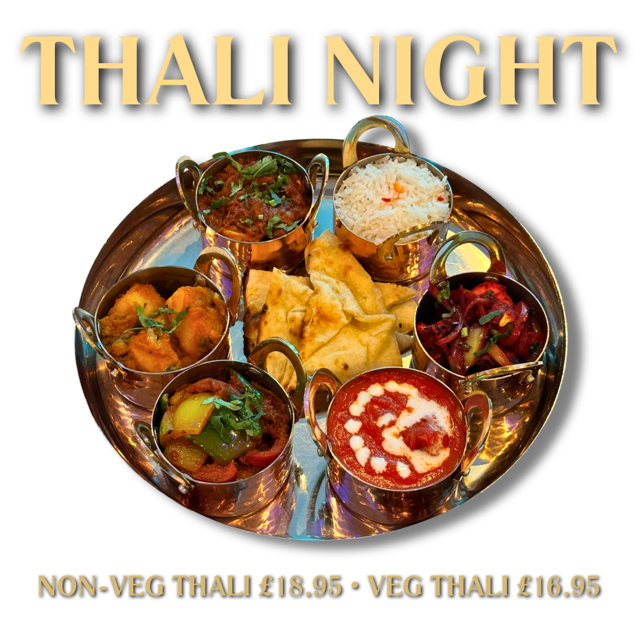 Join us every Wednesday, Thursday and Sunday and enjoy a full spread of bold Indian dishes, perfectly paired and finished with a drink on us (excludes cocktails).